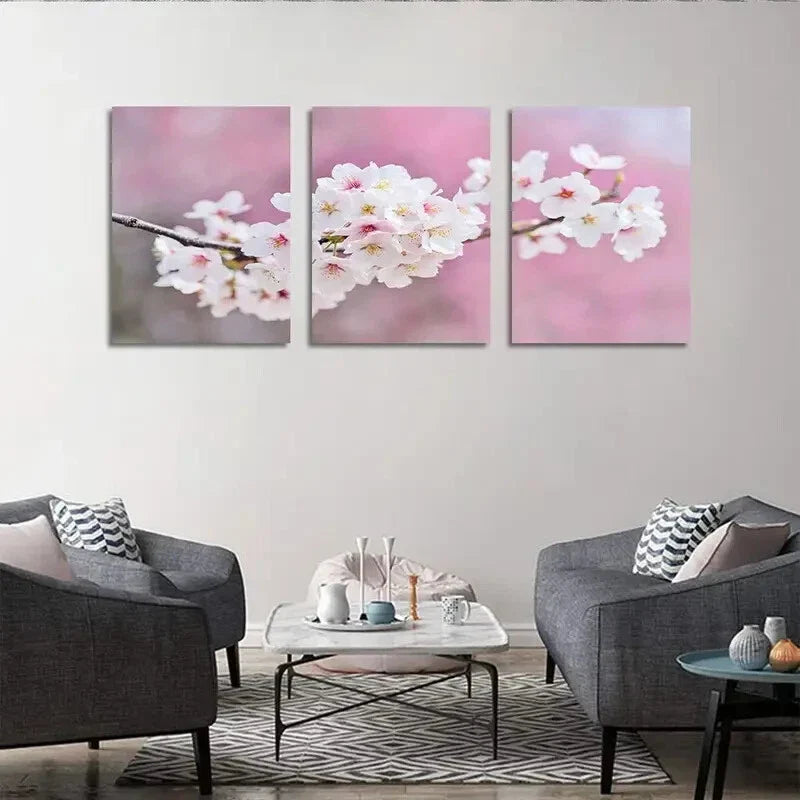 3pcs Pink and White Peach Cherry Blossom Metal Print Ready to Hang Art