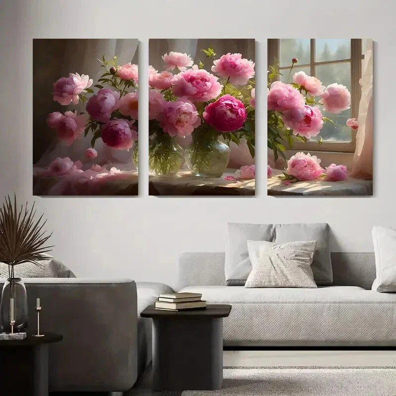 3pcs Pink Peony Vase Triptych Metal Print Ready to Hang Art