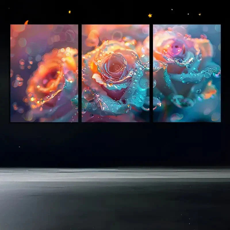 3pcs Pink Rose Floral Blue & Pink Metal Print Ready to Hang Art
