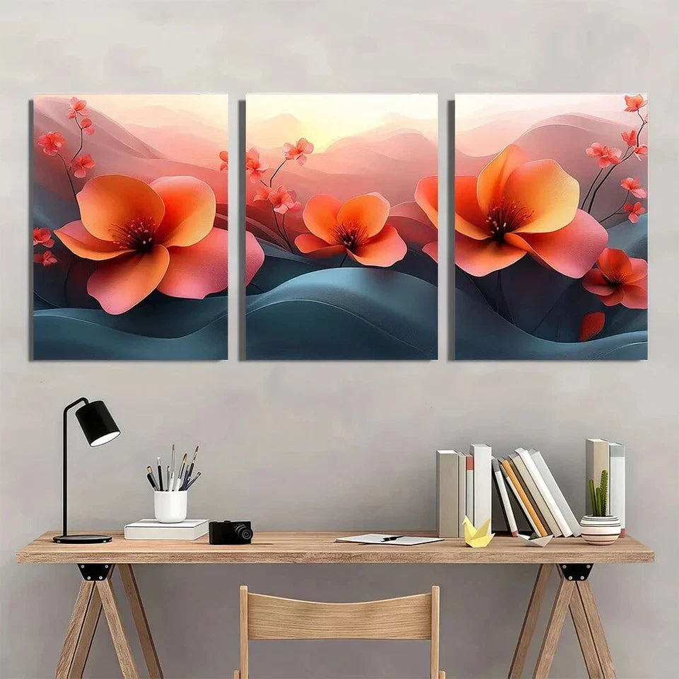 3pcs Pinky Orange Flowers Abstract Backg Metal Print Ready to Hang Art