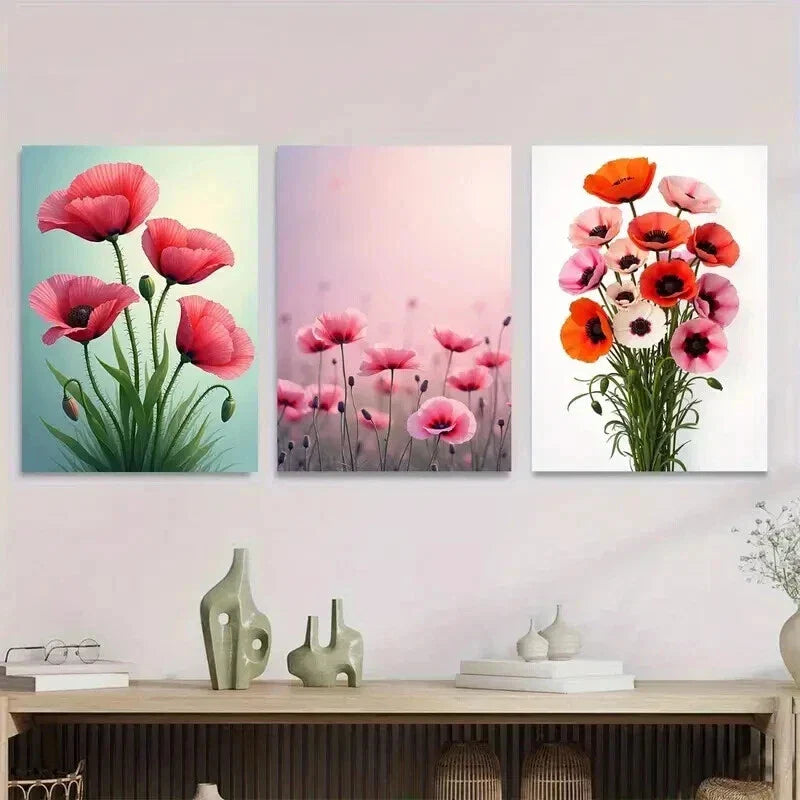 3pcs Poppy Flower Vibrant Pink & Orange Poppy Wall Art Set Canvas Framed 40x60cm - High Quality Print 100% Australian Made Wall Canvas Ready to Hang