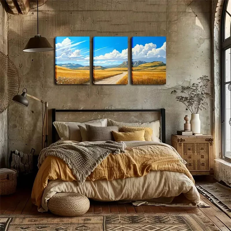 3pcs Prairie And Sky, Fine Wall Art Set Canvas Framed 40x60cm - High Quality Print 100% Australian Made Wall Canvas Ready to Hang