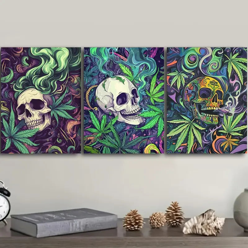 3pcs Psychedelic Skull Metal Print Ready to Hang Art