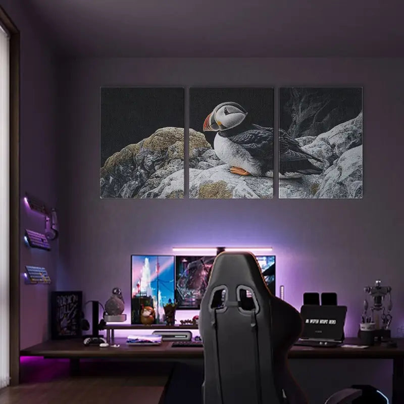 3pcs Puffin on Rocky Shore of New England Metal Print Ready to Hang Art