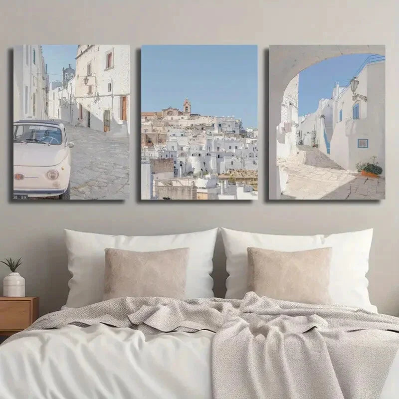 3pcs Puglia Mediterranean Vintage Car Metal Print Ready to Hang Art