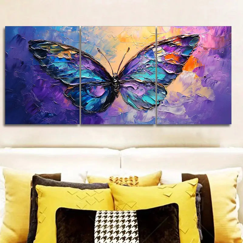 3pcs Purple Butterfly Metal Print Ready to Hang Art