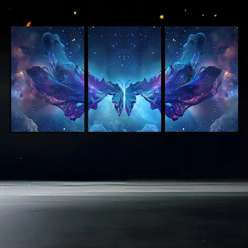 3pcs Purple Butterfly Nebula Galaxy Metal Print Ready to Hang Art