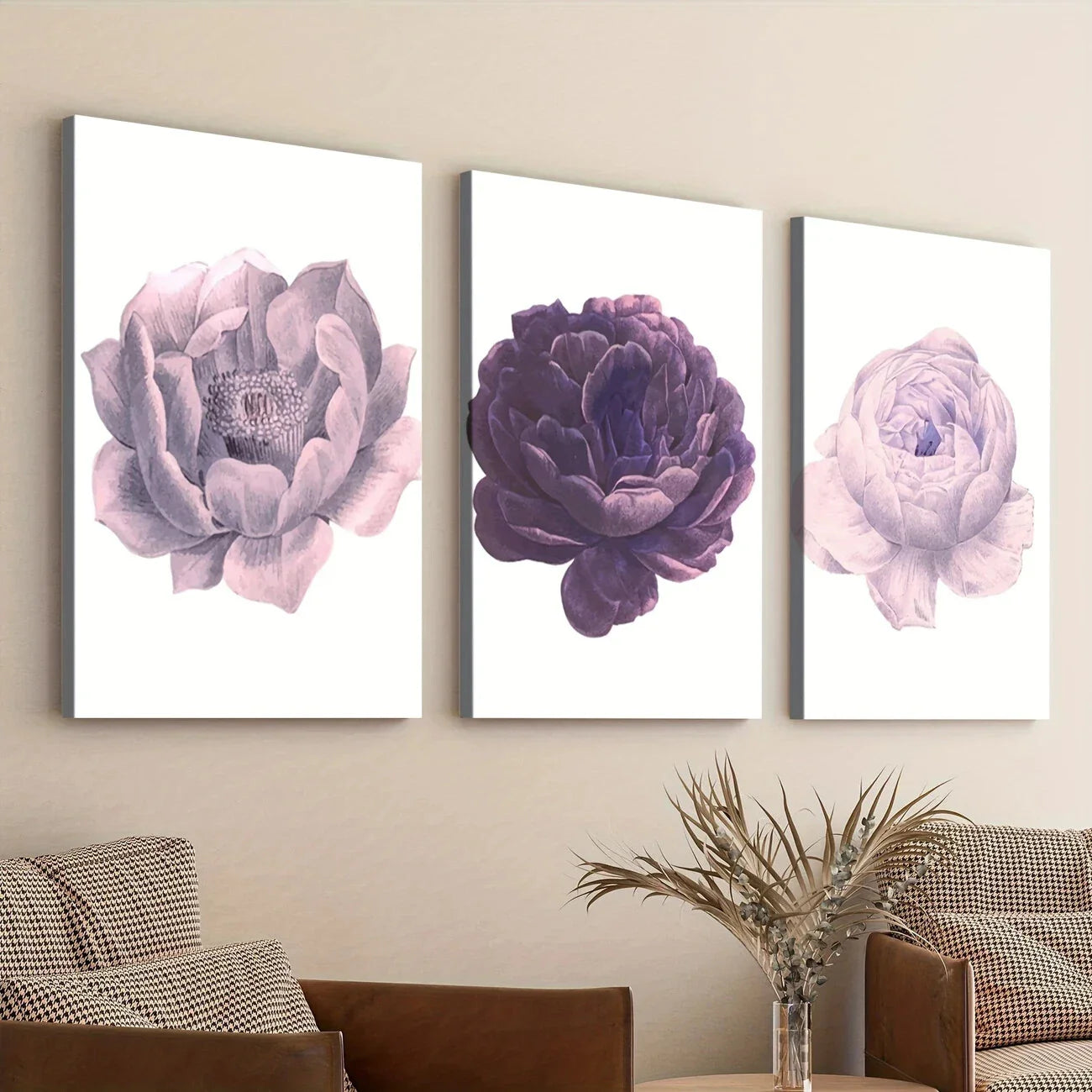 3pcs Purple Flower Elegant Art White Light Rose Wall Art Set Canvas Framed 40x60cm - High Quality Print 100% Australian Made Wall Canvas Ready to Hang