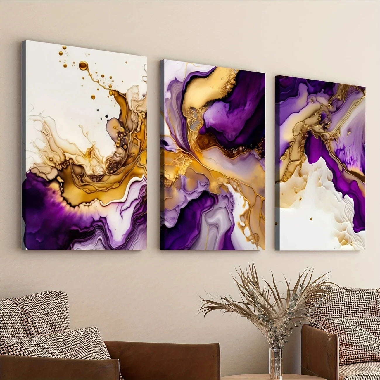 3pcs Purple Modern Abstract Modern Art Golden Wall Art Set Canvas Framed 40x60cm - High Quality Print 100% Australian Made Wall Canvas Ready to Hang