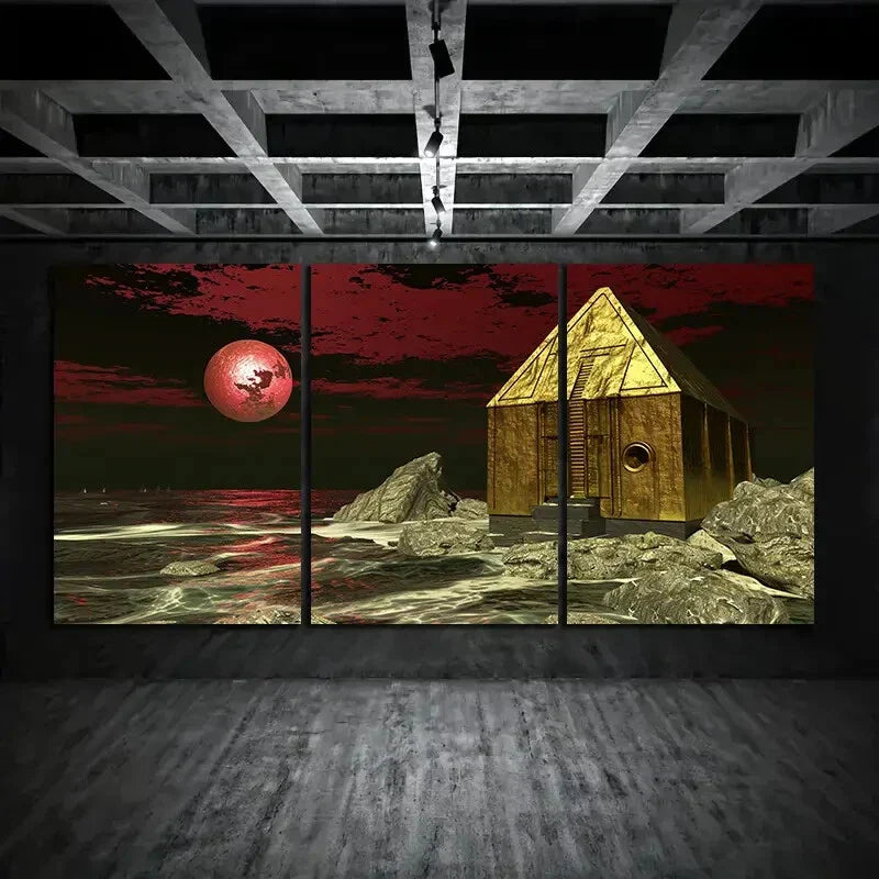 3pcs Pyramid Textured Relief Multicolor Metal Print Ready to Hang Art