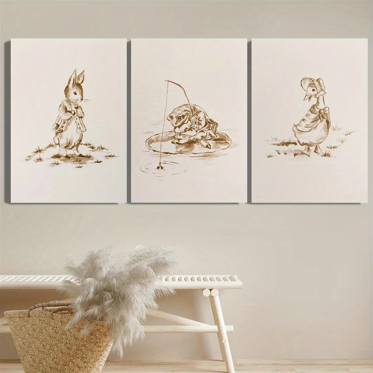 3pcs Rabbit, Duck, Frog Art Painting, Animal Metal Print Ready to Hang Art