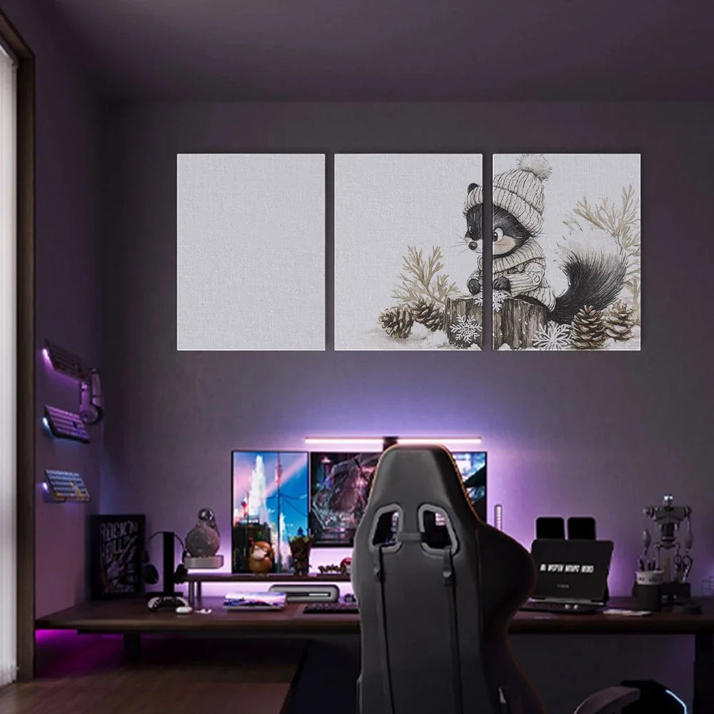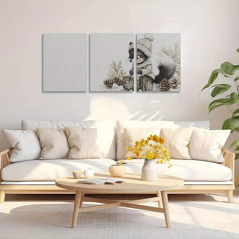 3pcs Raccoon Skunk in Oversized Sweater & Hat Metal Print Ready to Hang Art