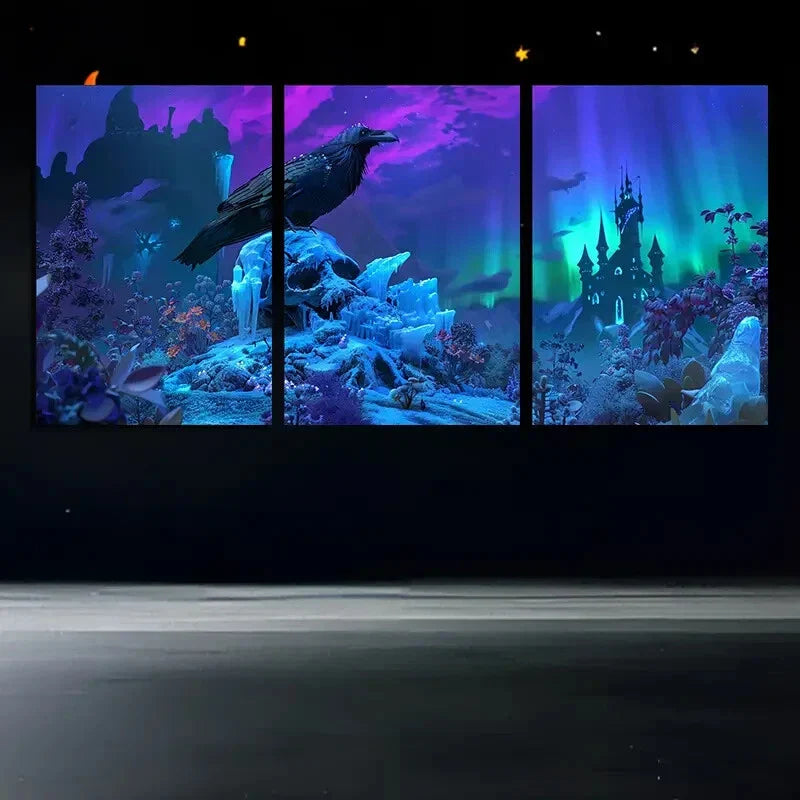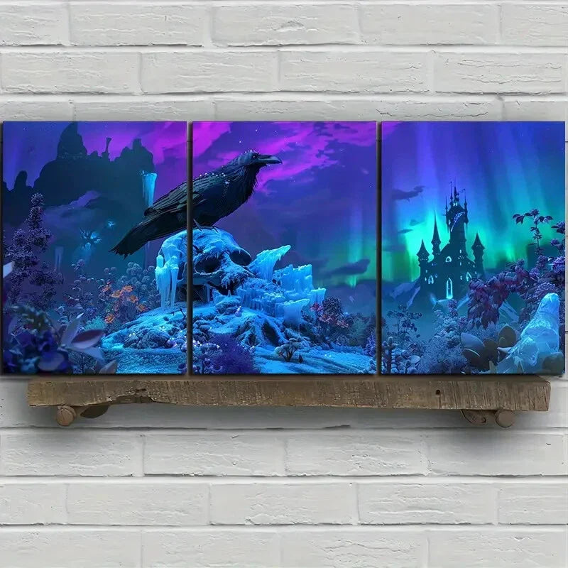 3pcs Raven & Skull Fantasy Gothic Metal Print Ready to Hang Art
