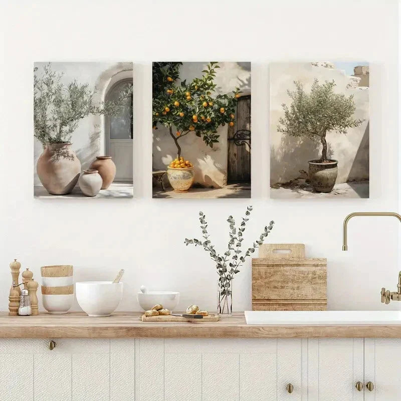 3pcs Realistic Vintage Olive & Lemon Tree Metal Print Ready to Hang Art