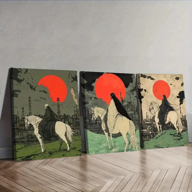 3pcs Red Sunset & White Horse Design Wall Art Set Canvas Framed 40x60cm - High Quality Print 100% Australian Made Wall Canvas Ready to Hang