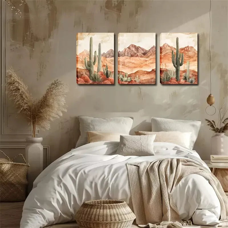 3pcs Relaxing, Desert Cactus Wall Art Set Canvas Framed 40x60cm - High Quality Print 100% Australian Made Wall Canvas Ready to Hang