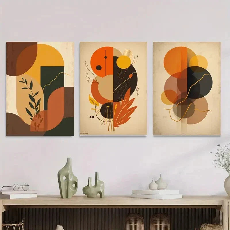 3pcs Retro Abstract Geometric & Floral Designs Wall Art Set Canvas Framed 40x60cm - High Quality Print 100% Australian Made Wall Canvas Ready to Hang