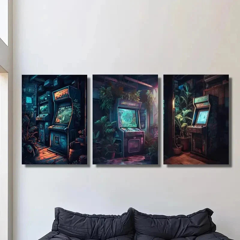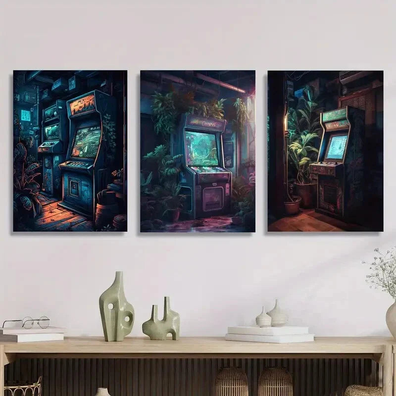 3pcs retro arcade style, retro gaming aesthetics, Metal Print Ready to Hang Art