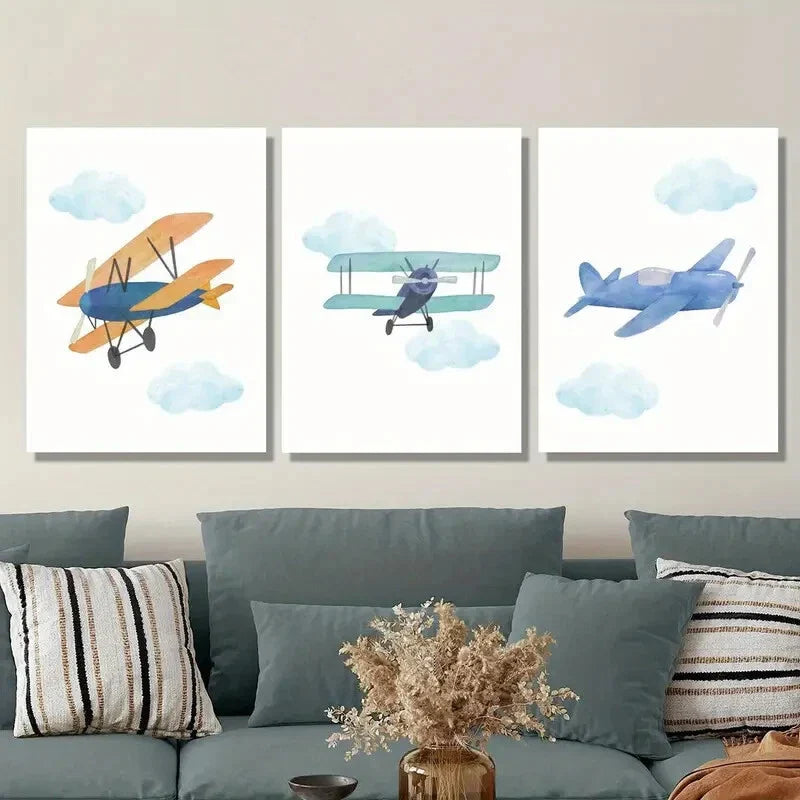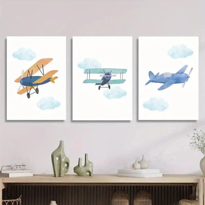 3pcs Retro Cartoon Plane Prints Metal Print Ready to Hang Art