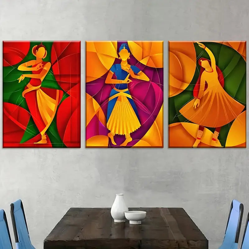 3pcs Retro Dance Girl Figure Abstract Art Wall Art Set Canvas Framed 40x60cm - High Quality Print 100% Australian Made Wall Canvas Ready to Hang