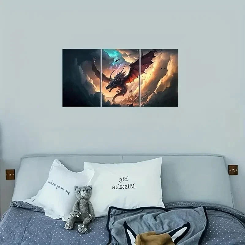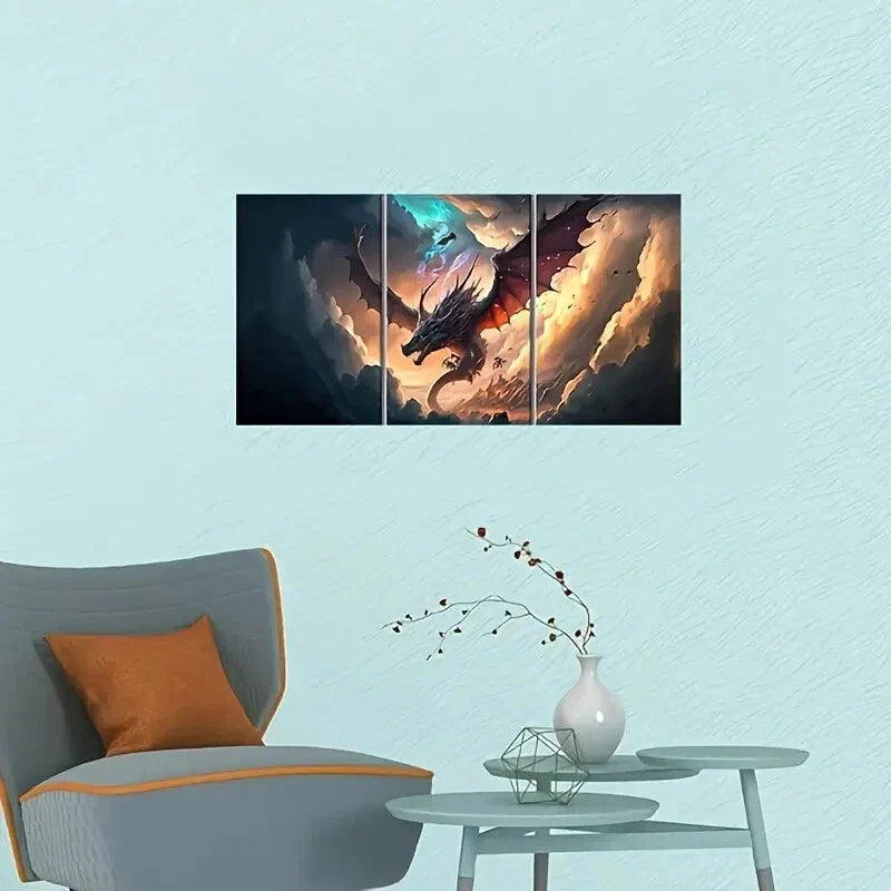3pcs Retro Pterosauria in Clouds Metal Print Ready to Hang Art