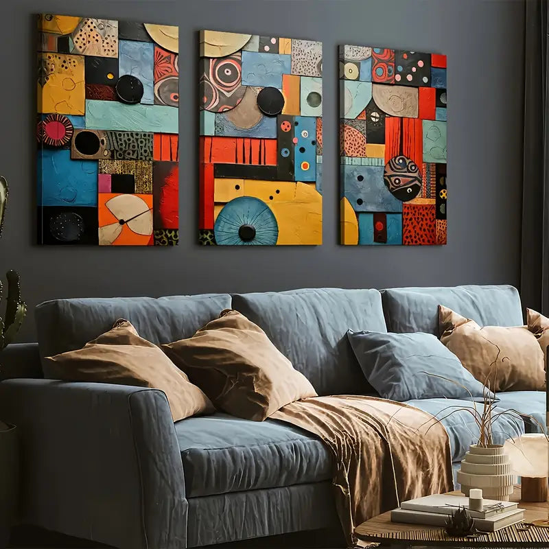 3pcs Retro Style Fashion Abstract Graphic Art Vintage Wall Art Set Canvas Framed 40x60cm - High Quality Print 100% Australian Made Wall Canvas Ready to Hang