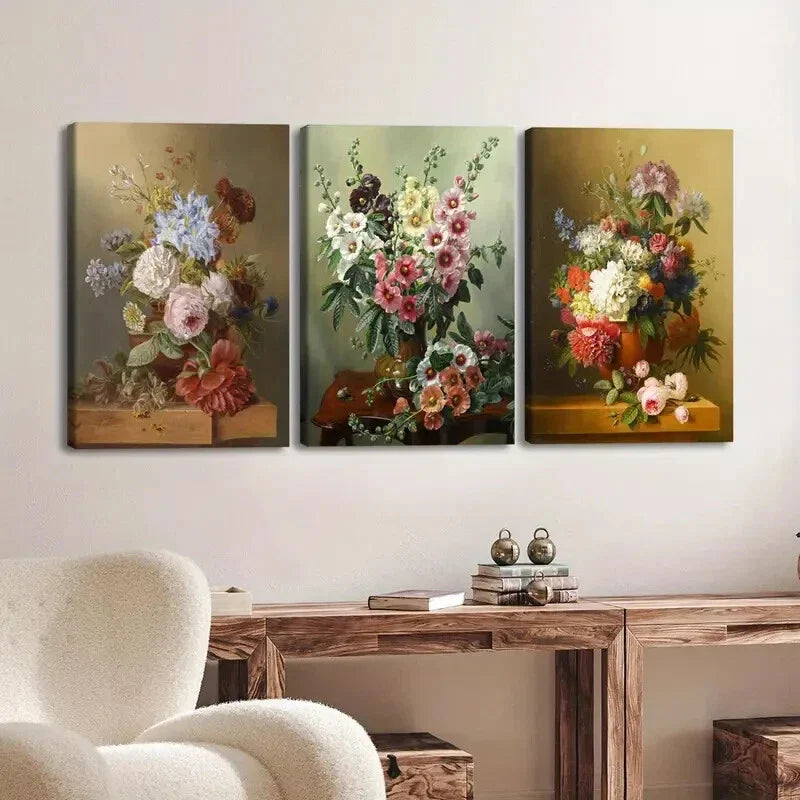 3pcs Retro Vintage Oil Paint Style Flowers Lion Wall Art Set Canvas Framed 40x60cm - High Quality Print 100% Australian Made Wall Canvas Ready to Hang