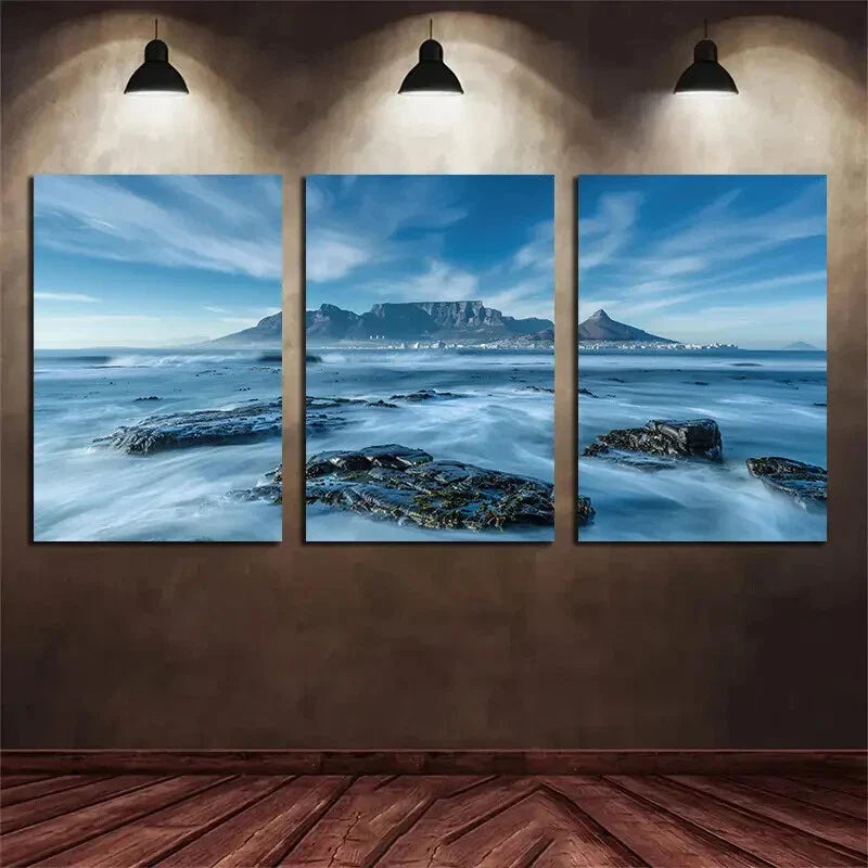 3pcs Rock and Ocean Blue Sky White Clouds Metal Print Ready to Hang Art