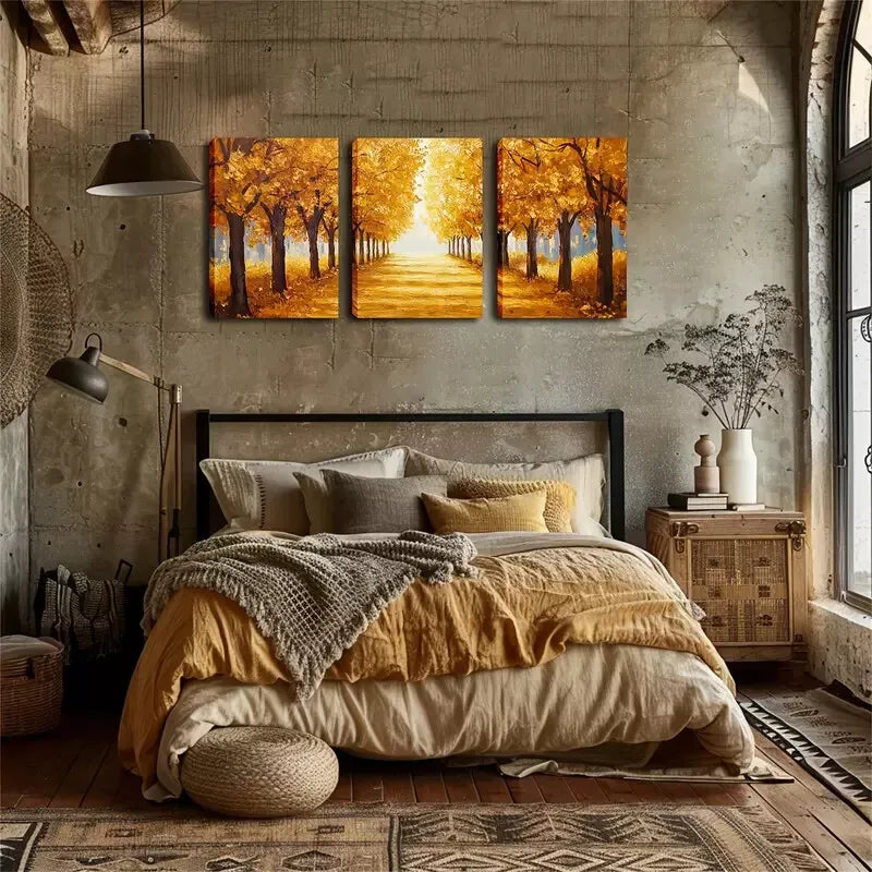 3pcs Romantic Autumn Forest Passage Wall Art Set Canvas Framed 40x60cm - High Quality Print 100% Australian Made Wall Canvas Ready to Hang