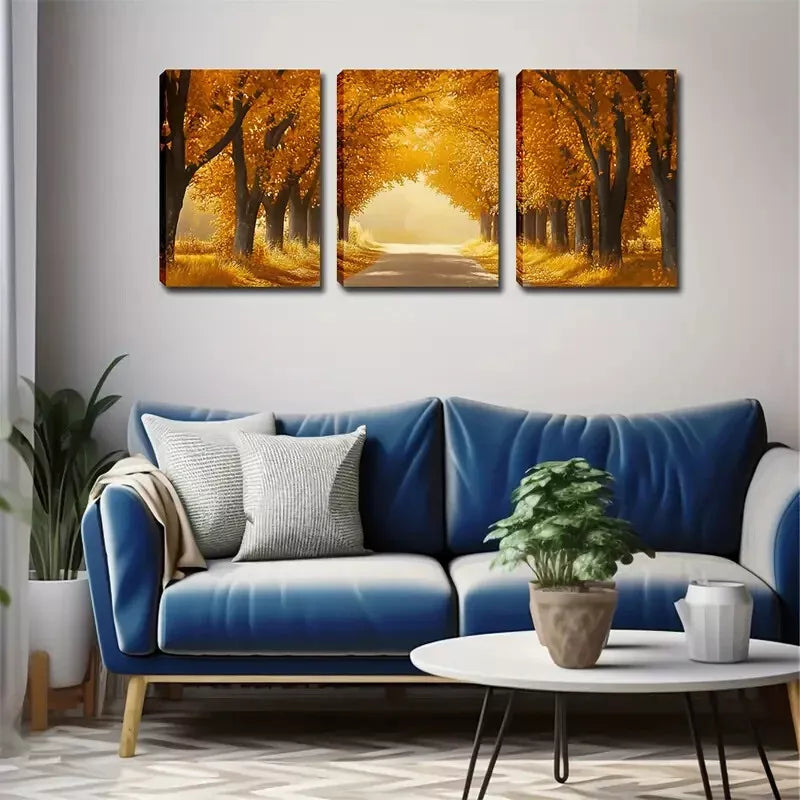 3pcs Romantic Autumn Forest Scene Wall Art Set Canvas Framed 40x60cm - High Quality Print 100% Australian Made Wall Canvas Ready to Hang