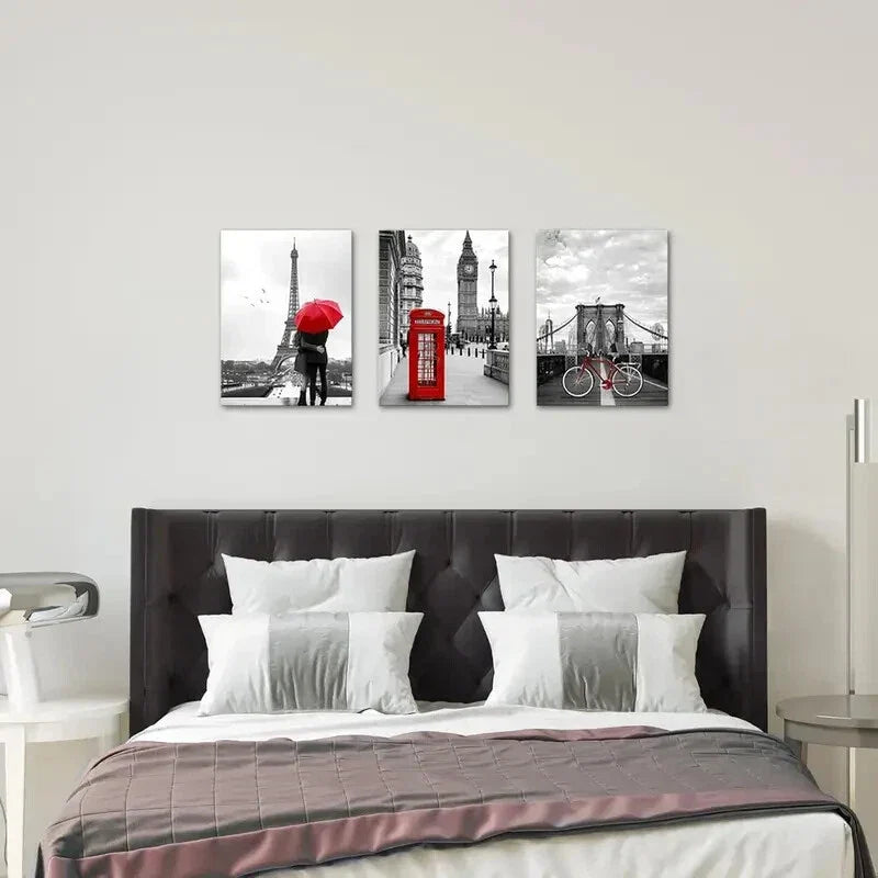 3pcs Romantic Couple, London Bicycle, Big Ben Metal Print Ready to Hang Art