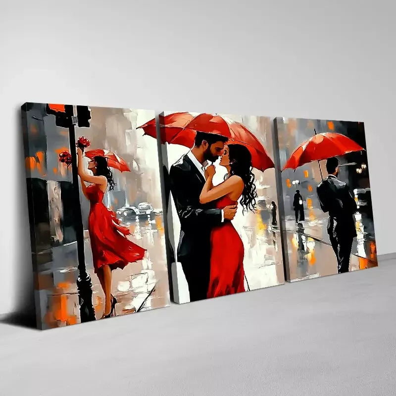 3pcs Romantic Couple with Umbrella Raining Wall Art Set Canvas Framed 40x60cm - High Quality Print 100% Australian Made Wall Canvas Ready to Hang