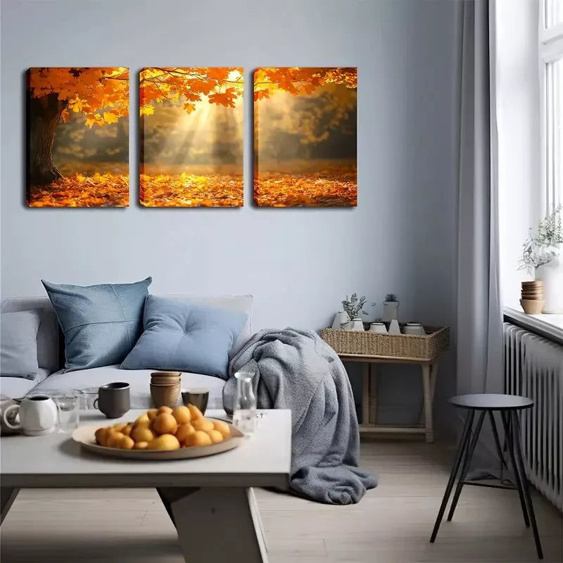 3pcs Romantic Maple Leaves & Sunlight Triptych Wall Art Set Canvas Framed 40x60cm - High Quality Print 100% Australian Made Wall Canvas Ready to Hang