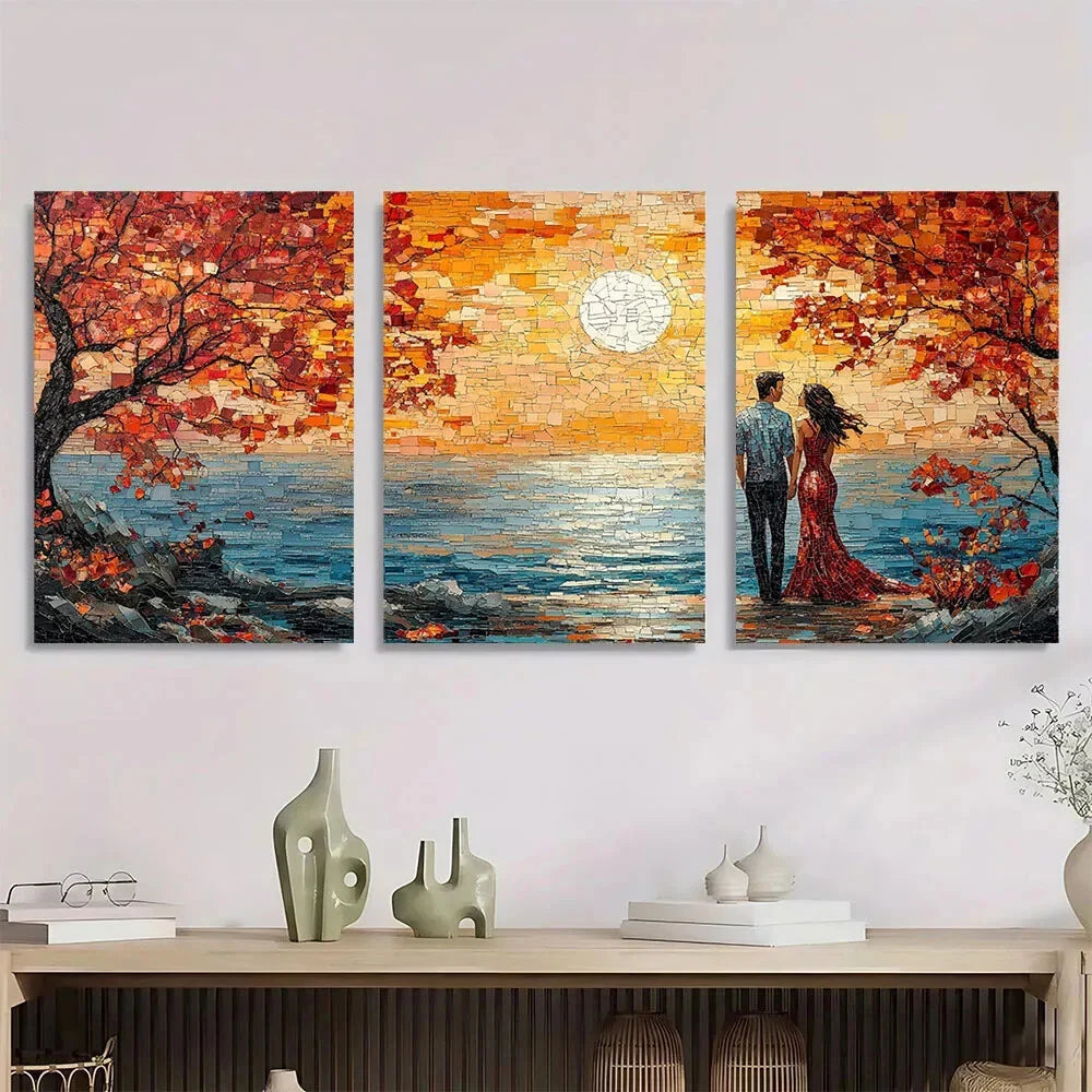 3pcs Romantic Sunset Vibrant Autumn Metal Print Ready to Hang Art