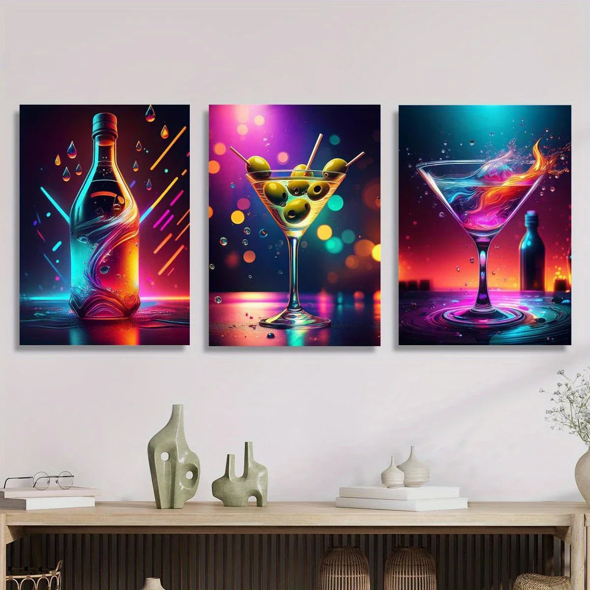 3pcs Roostertail, daily soup bar, neon wine glass Metal Print Ready to Hang Art