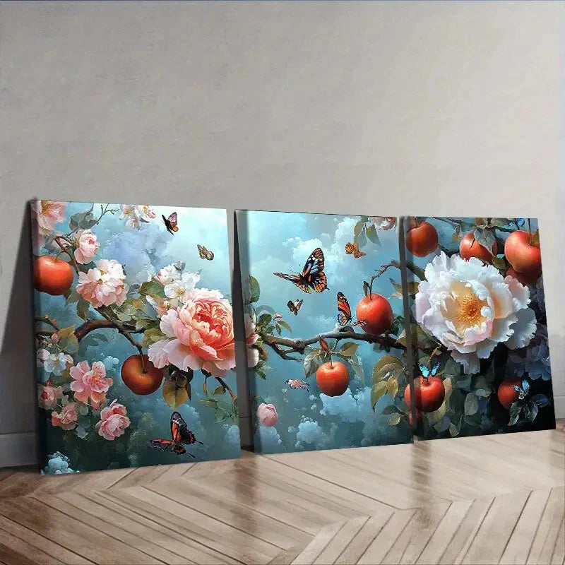 3pcs Rose hips and butterflies are flying Wall Art Set Canvas Framed 40x60cm - High Quality Print 100% Australian Made Wall Canvas Ready to Hang