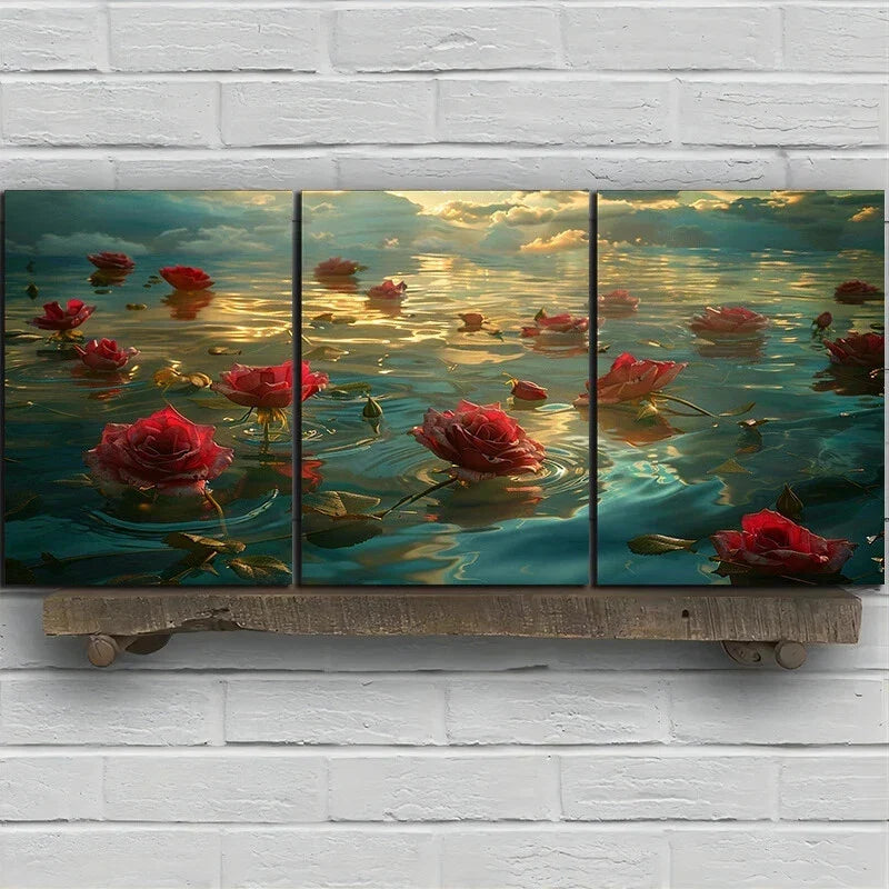 3pcs Rose River Blue Sky White Clouds Metal Print Ready to Hang Art
