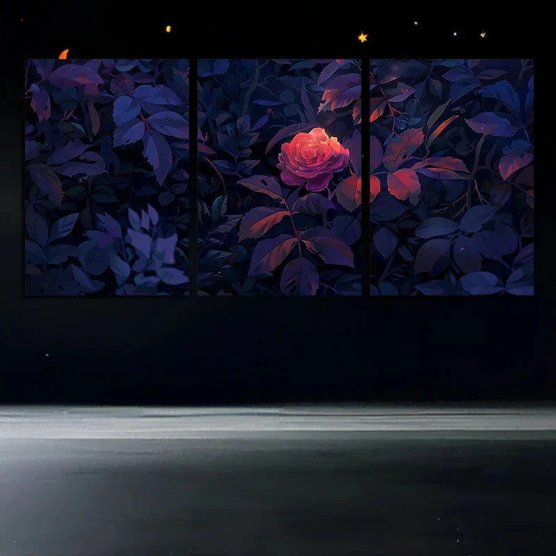 3pcs Roses Leaves Purple Themed Metal Print Ready to Hang Art