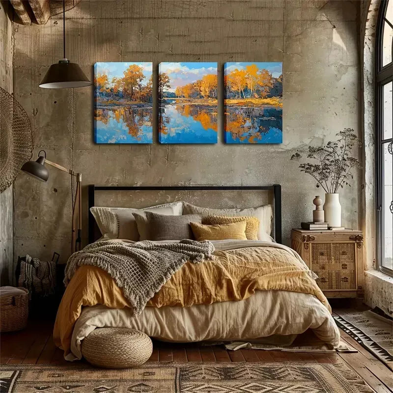 3pcs Rustic Autumn Forest Reflection Wall Art Set Canvas Framed 40x60cm - High Quality Print 100% Australian Made Wall Canvas Ready to Hang
