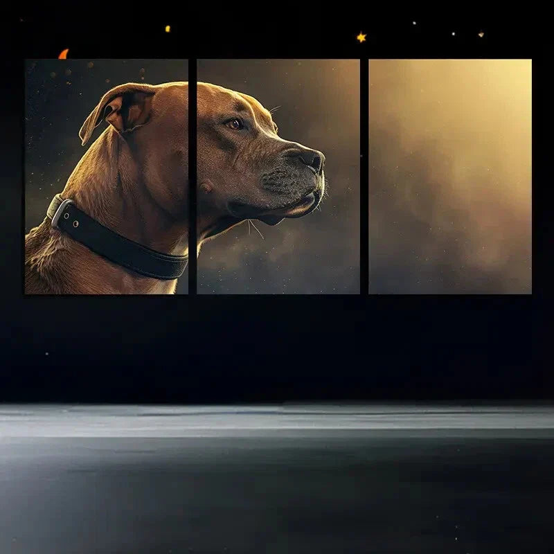 3pcs Rustic Brown Dog Black Belt Metal Print Ready to Hang Art