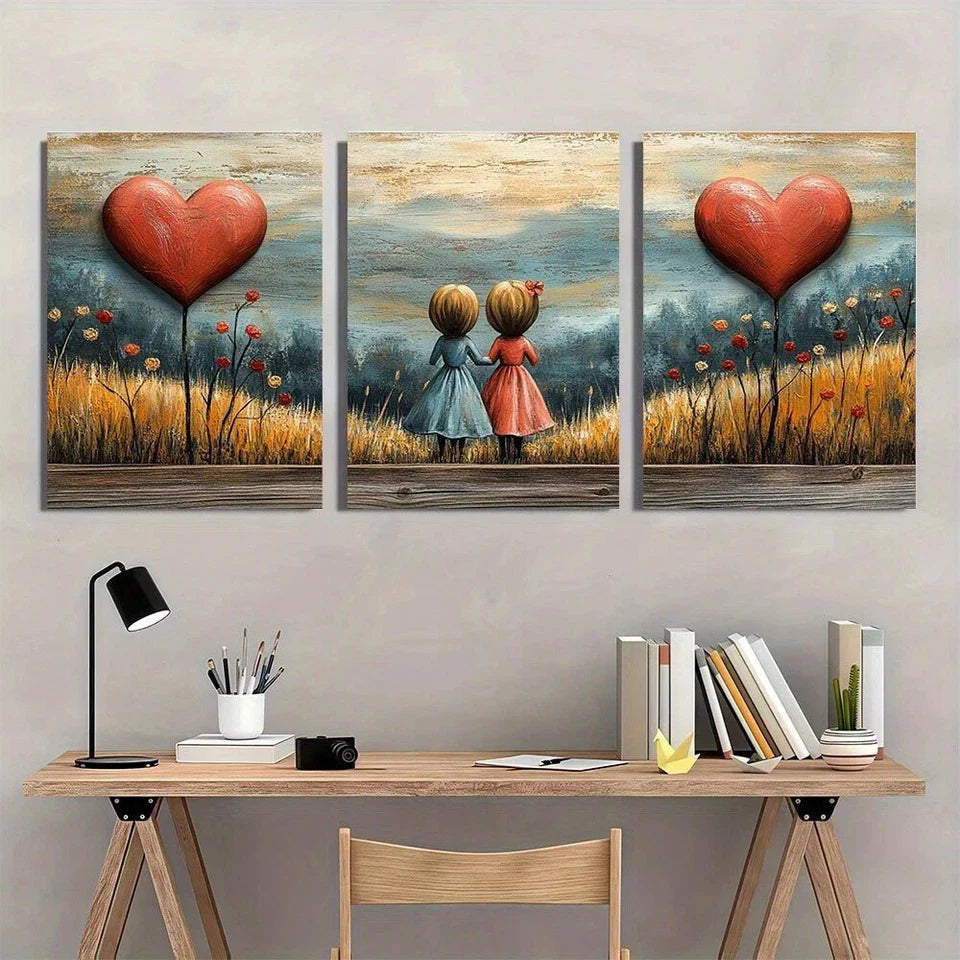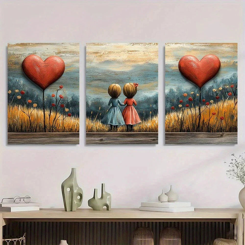 3pcs Rustic Heart Mother & Daughter Love Metal Print Ready to Hang Art