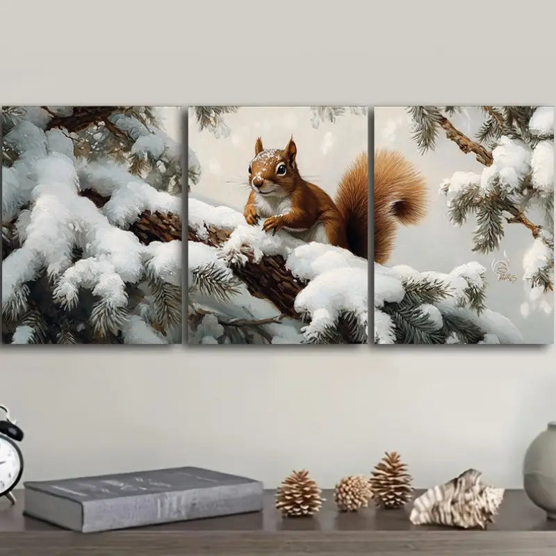 3pcs Rustic Squirrel on Branch Metal Print Ready to Hang Art