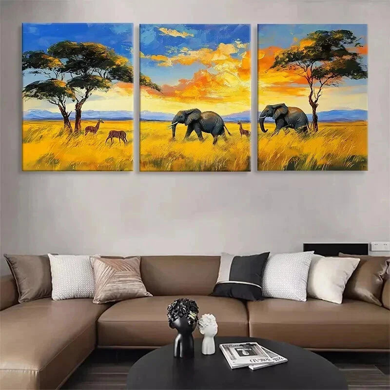 3pcs Safari Sunset Landscape Golden Perfect Wall Art Set Canvas Framed 40x60cm - High Quality Print 100% Australian Made Wall Canvas Ready to Hang