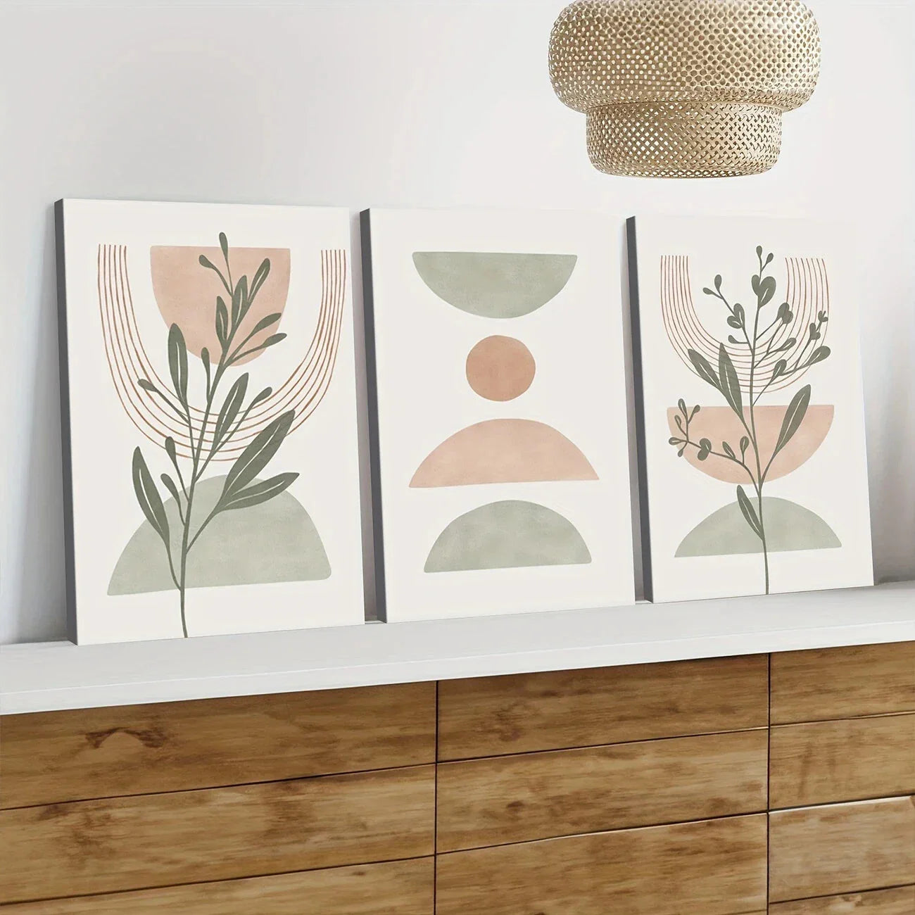 3pcs Sage Green Modern Abstract Blush Pink Green Wall Art Set Canvas Framed 40x60cm - High Quality Print 100% Australian Made Wall Canvas Ready to Hang