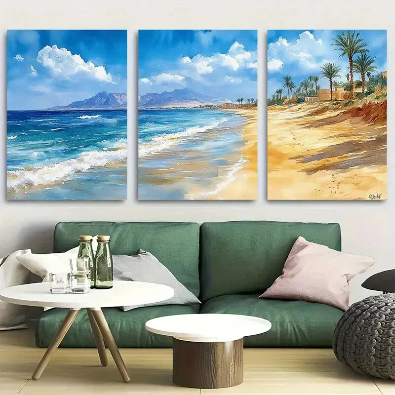 3pcs Sahl Hasheesh, Egypt Watercolor Beach Metal Print Ready to Hang Art