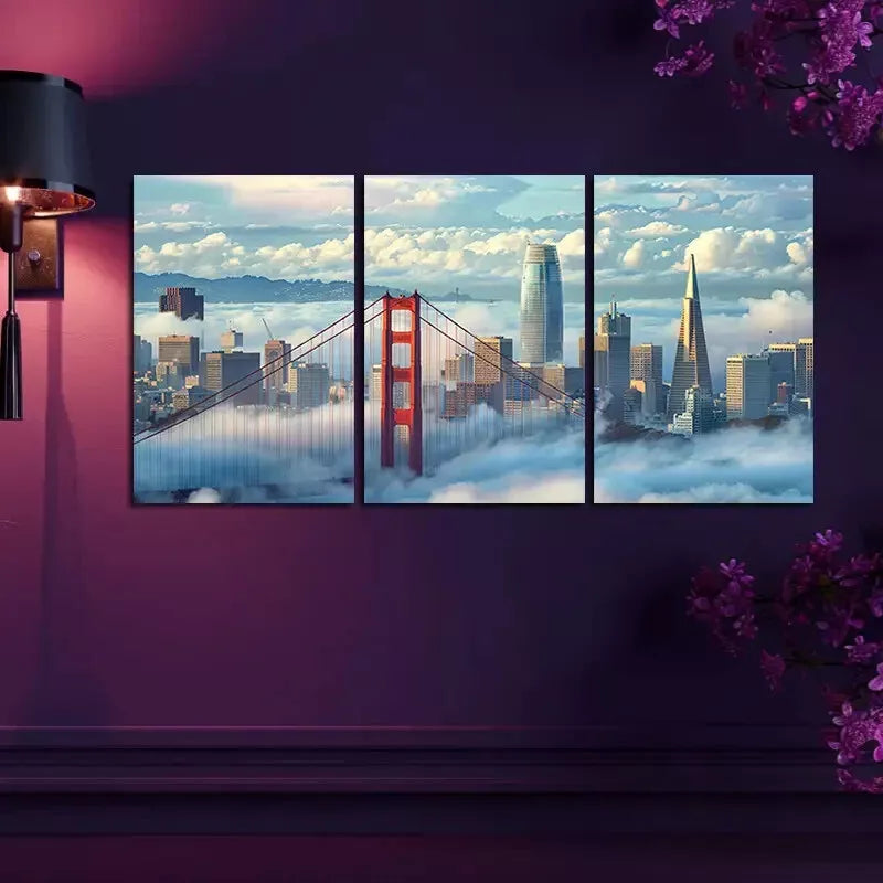 3pcs San Francisco Skyline Canvas Framed 40x60cm - High Quality Print 100% Australian Made Wall Canvas Ready to Hang