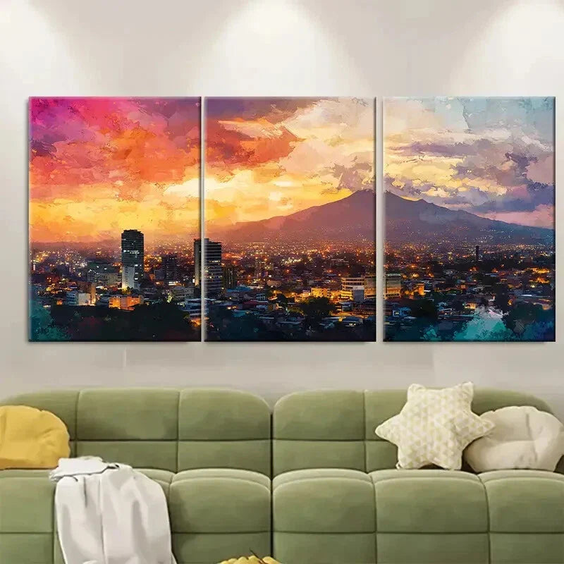 3pcs San Salvador Cityscape Unique Metal Print Ready to Hang Art