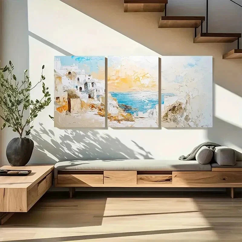 3pcs Santorini Greece Greek Island Sunset Triptych Metal Print Ready to Hang Art