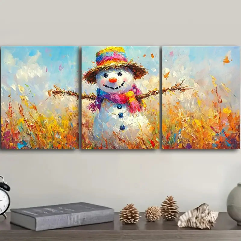3pcs Scarecrow in Wheat Field Metal Print Ready to Hang Art