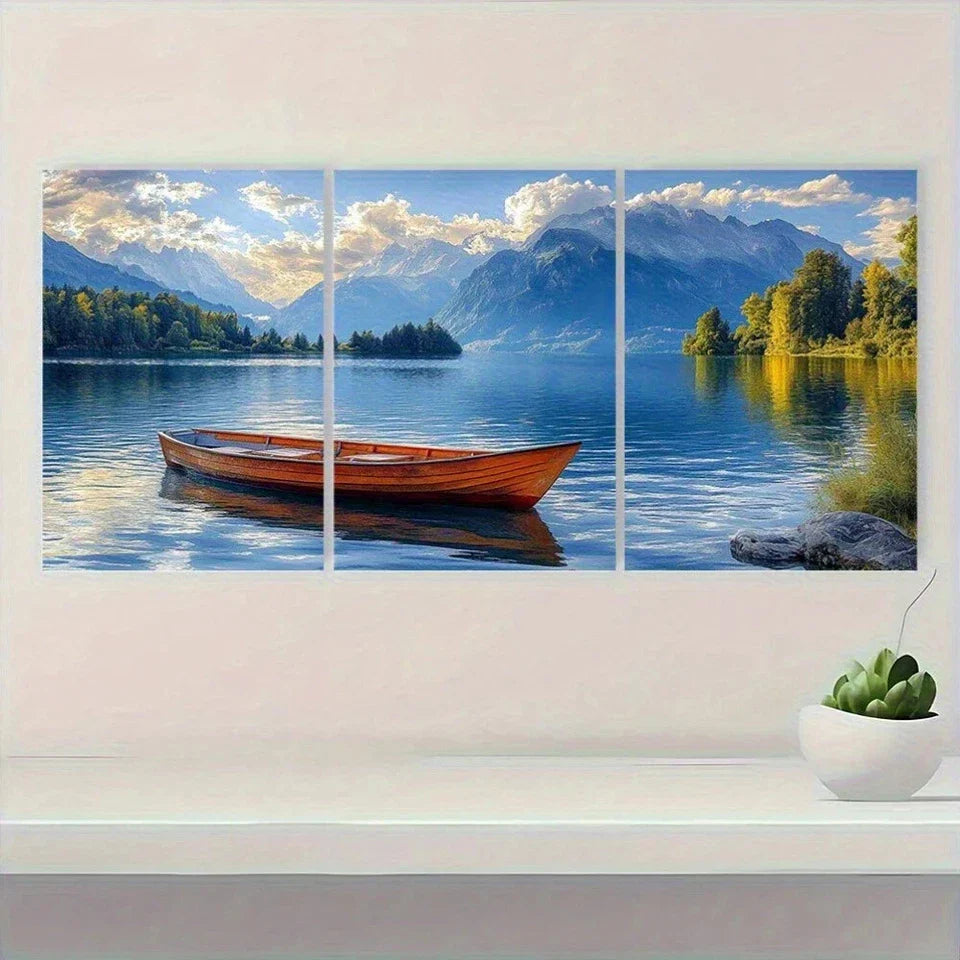 3pcs Scenic Lake & Mountain Blue Sky Green Trees Metal Print Ready to Hang Art